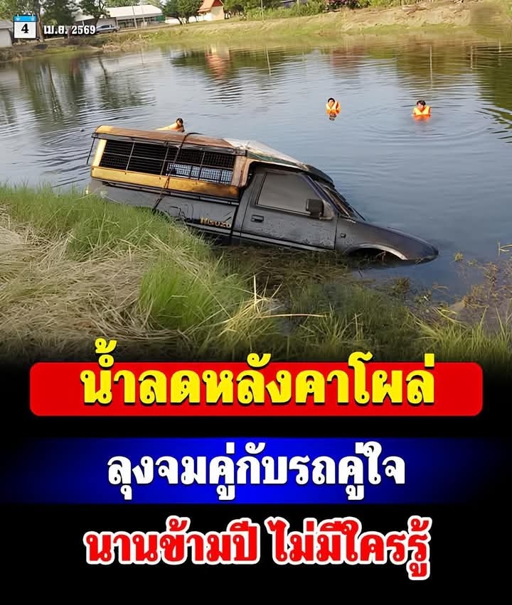 วันที่ 4 เม.ย. 2569 หน่วยกู้ภัยหนองกี่ร่วมกับชาวบ้าน นำรถแบคโฮ ลากเอารถกระบะยี่ห้ออีซูซุ แบบตอนเดียว ใส่โครงหลังคาเหล็กขึ้นจากสระน้ำกลางหมู่บ้านบ้านหนองตาดำ หมู่ 3 ต.เย้ยปราสาท อ.หนองกี่ จ.บุรีรัมย์ หลังจากชาวบ้านพบเป็นเงาหลังคารถอยู่ภายในสระน้ำ