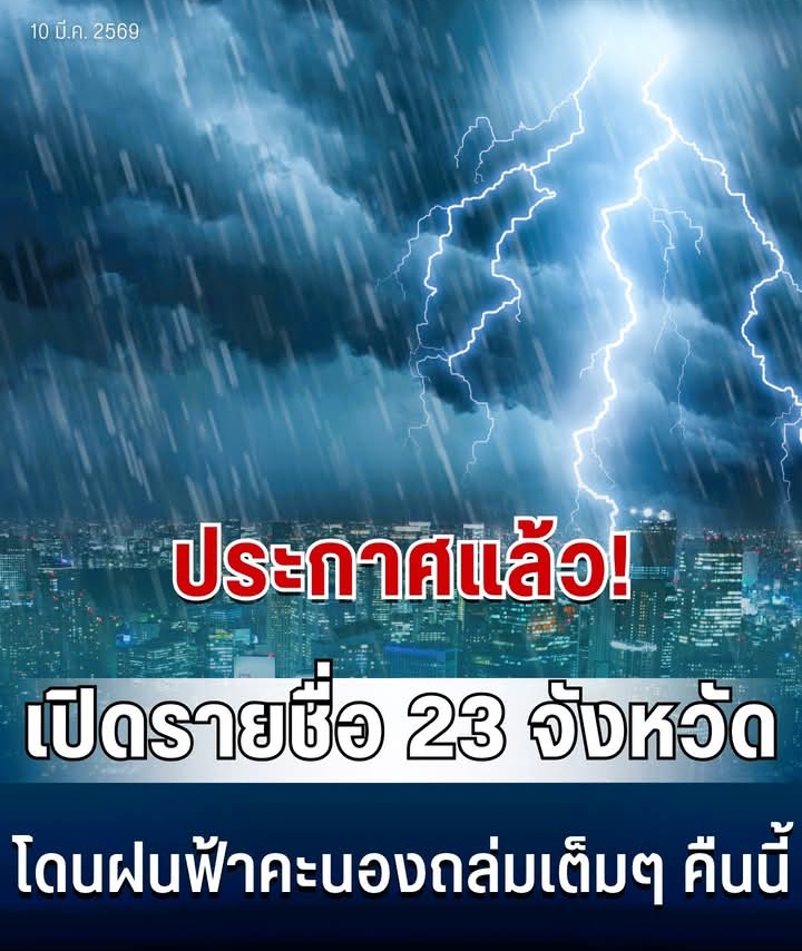 วันที่ 10 มีนาคม 2569 กรมอุตุนิยมวิทยา ได้ออกประกาศพยากรณ์อากาศ 24 ชั่วโมงข้างหน้า เตือนประชาชนรับมือสภาพอากาศแปรปรวน โดยภาคเหนือเตรียมรับมือพายุฤดูร้อน พายุฝนฟ้าคะนอง ลมกระโชกแรง ลูกเห็บตก และฟ้าผ่า เนื่องจากคลื่นกระแสลมฝ่ายตะวันตกจากประเทศเมียนมาเคลื่อนเข้าปกคลุม
