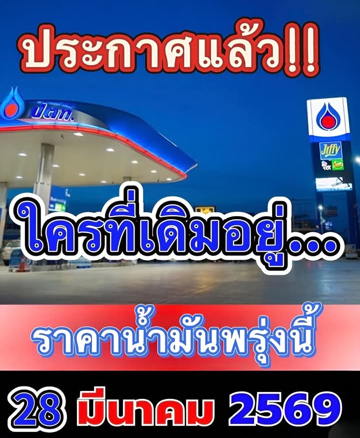 ประกาศแล้ว!! ราคาน้ำมันพรุ่งนี้ (28 มี.ค. 69)