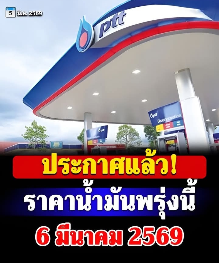 May be an image of ‎text that says '‎มี.ค.2 มี.ค.2569 2569 สยามนิวส์ Siam News SiamNewsOnline Online OEE هوه Opit ิก ล Betuston ประกาศแล้ว! เล้ว! ราคาน้ำมันพรุ่งนี้ 6 มีนาคม 2569‎'‎