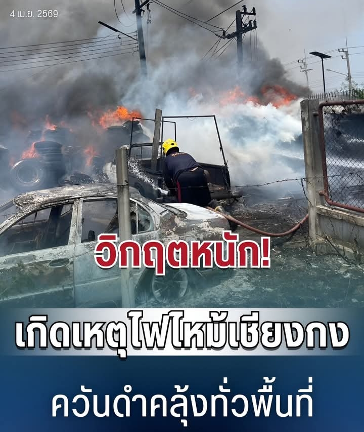 วิกฤตหนัก! เกิดเหตุไฟไหม้เชียงกง ควันดำคลุ้งทั่วพื้นที่ by NewPost Posted on April 4, 2026 วันที่ 4 เมษายน 2569 เพจรายงาน เกิดเหตุเพลิงไหม้เชียงกง พื้นที่ ต.คลองสอง อ.คลองหลวง จ.ปทุมธานี โดยขณะนี้เจ้าหน้าที่อยู่ระหว่างเข้าระงับเหตุ และควบคุมสถานการณ์ ความคืบหน้าจะแจ้งให้ทราบ
