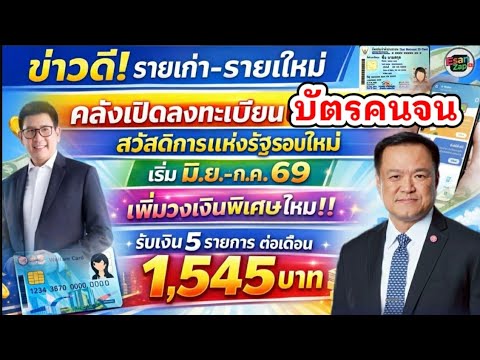 เพิ่มเงินลงทะเบียนบัตรคนจนรอบใหม่ รายเก่า-รายใหม่ เพิ่มเงินพื้นรับ 1,545 ต่อเดือนเริ่ม มิ.ย.-ก.ค.69