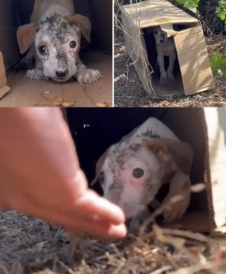 The cardboard box, humble and fragile, symbolized more than just a shelter. To this puppy, it was a sanctuary, a place of safety amidst the uncertainty of street life.