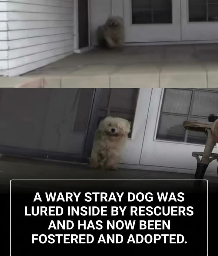 As the dog enjoyed his tasty treat, one of the rescuers gently reached out to pet him. This tender gesture allowed the dog to feel completely at ease. Soon after, they carefully slipped a leash around his neck and guided him into their vehicle.