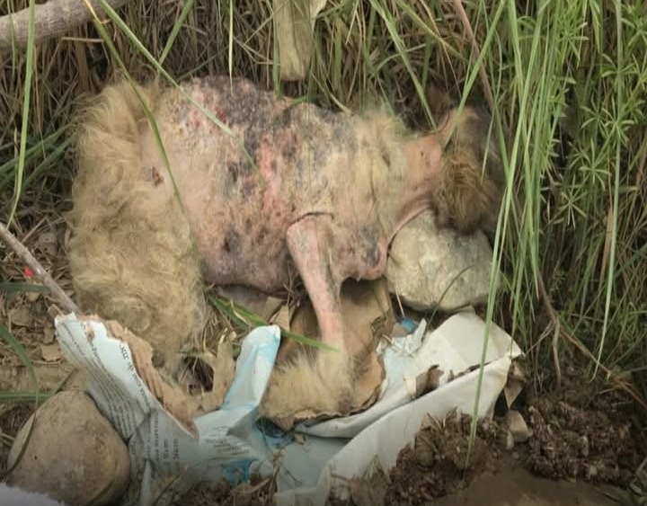 On the edge of a bustling road lay Linda, a small puppy in distress. Covered in dirt and barely moving, she struggled to breathe while flies buzzed around her fragile figure.