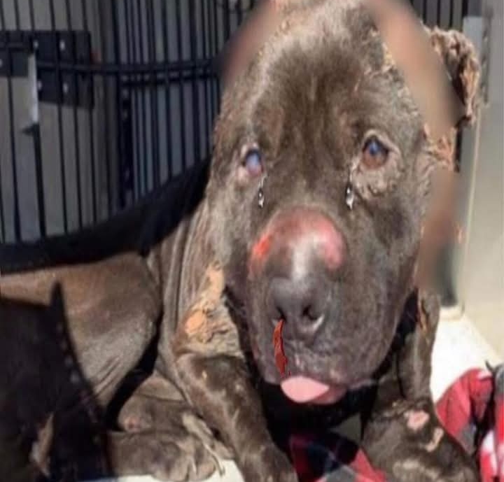 The cruel individuals tied him up and hung him as prey for other dogs. These aggressive dogs would charge at him, driving the dog thieves to chase and try to catch them.