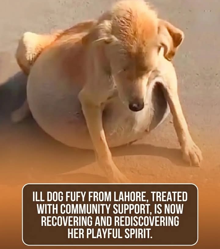 The dog, now affectionately named Fufy by her caregivers, is showing significant improvement and is on the path to recovery.