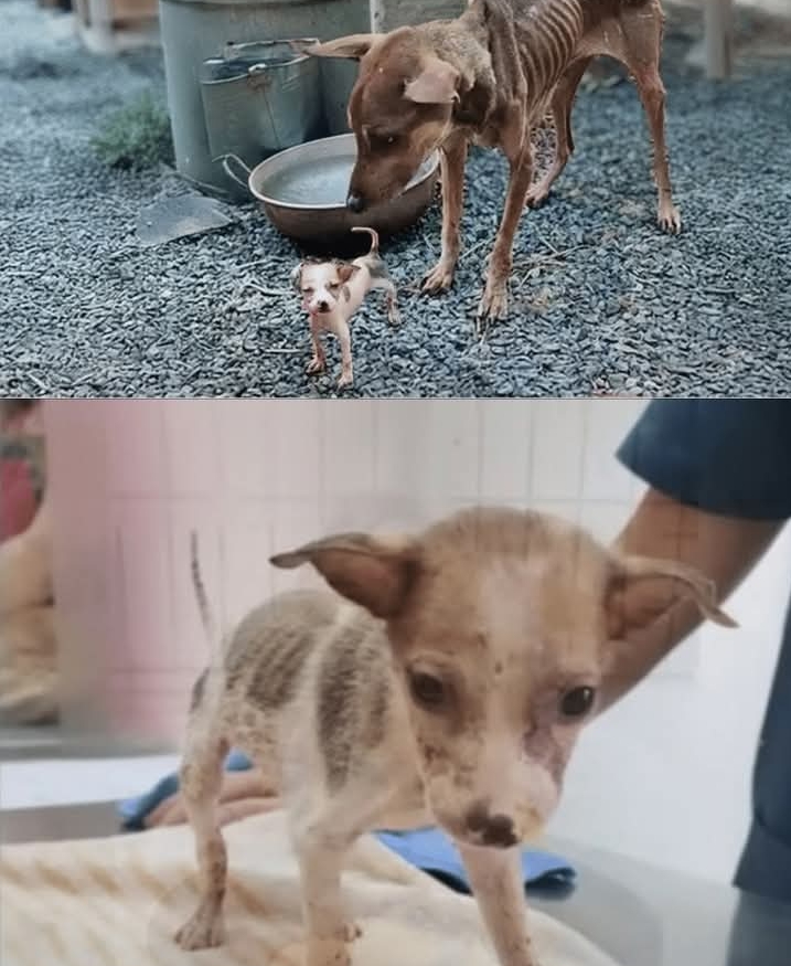 When rescuers arrived, they found the mother holding her puppy close, unwilling to let him go. Her eyes pleaded for help in a way that words never could.