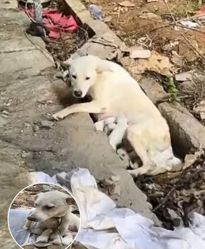 One such mother dog faced a disheartening situation when she was found tied to a sidewalk, unable to adequately care for her puppies. Her owner had shown her little kindness, compounding her distress as she tried to nurture her newborns under harsh conditions.