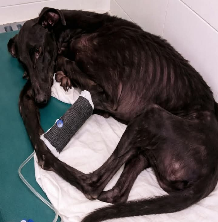 The cage that once defined her life no longer exists. What remains is a greyhound who finally knows open space.